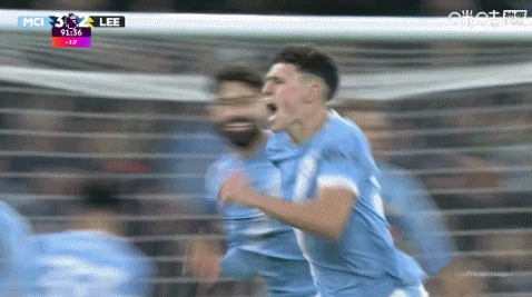 11月30日讯 曼城vs利兹联第91分钟,福登破门完成双响,比分变为曼城3-2!