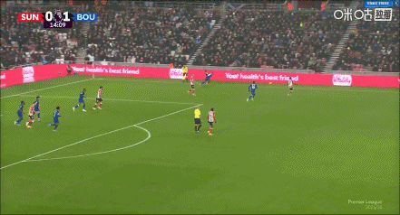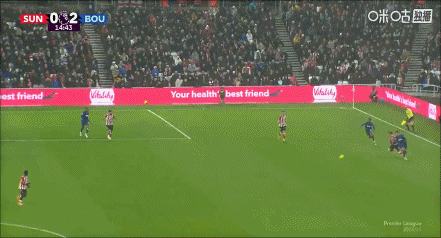 11月29日讯 英超第13轮,桑德兰vs伯恩茅斯,比赛第15分钟,伯恩茅斯中场亚当斯在43.3米的距离吊射破门。